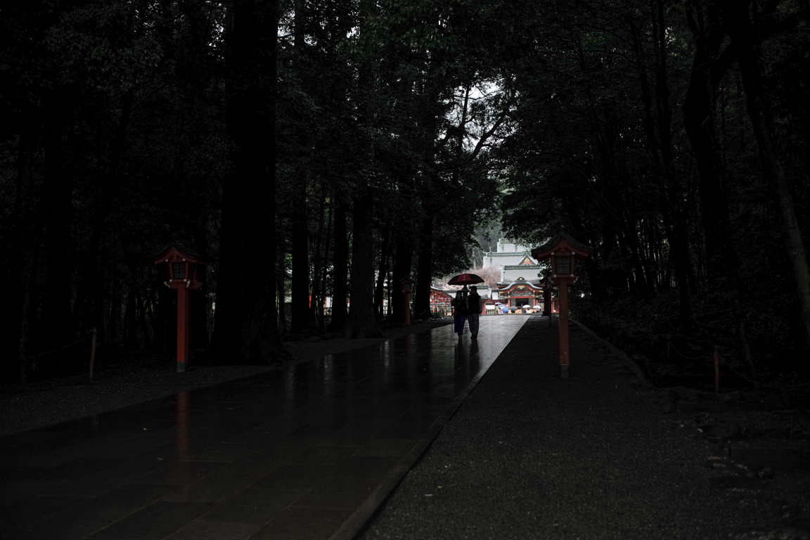 雨の霧島神宮を訪れる時間。