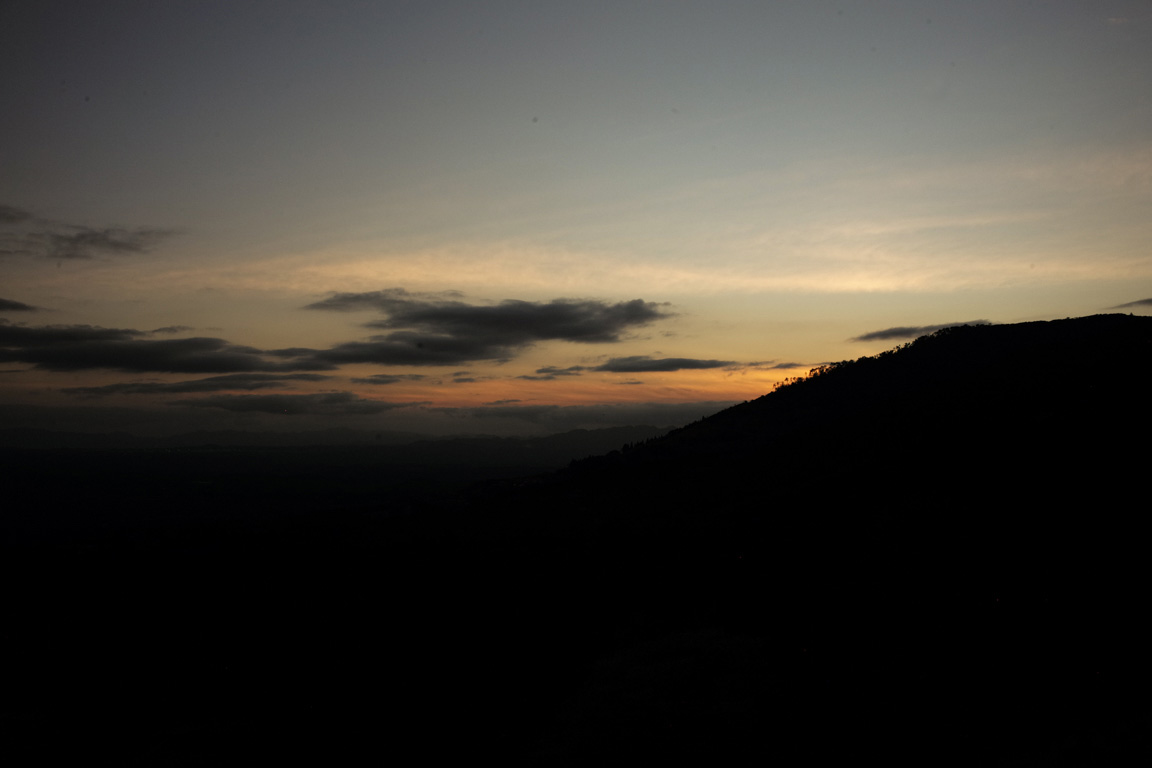 the first light appears from beyond the ridge line